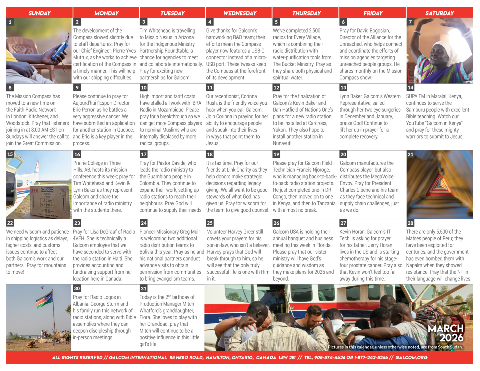 Prayer is essential to this ministry! Galcom International’s Prayer Calendar is sent out four times a year. With prayer being our foundation, we fill it with requests for our partners, volunteers, staff and projects.